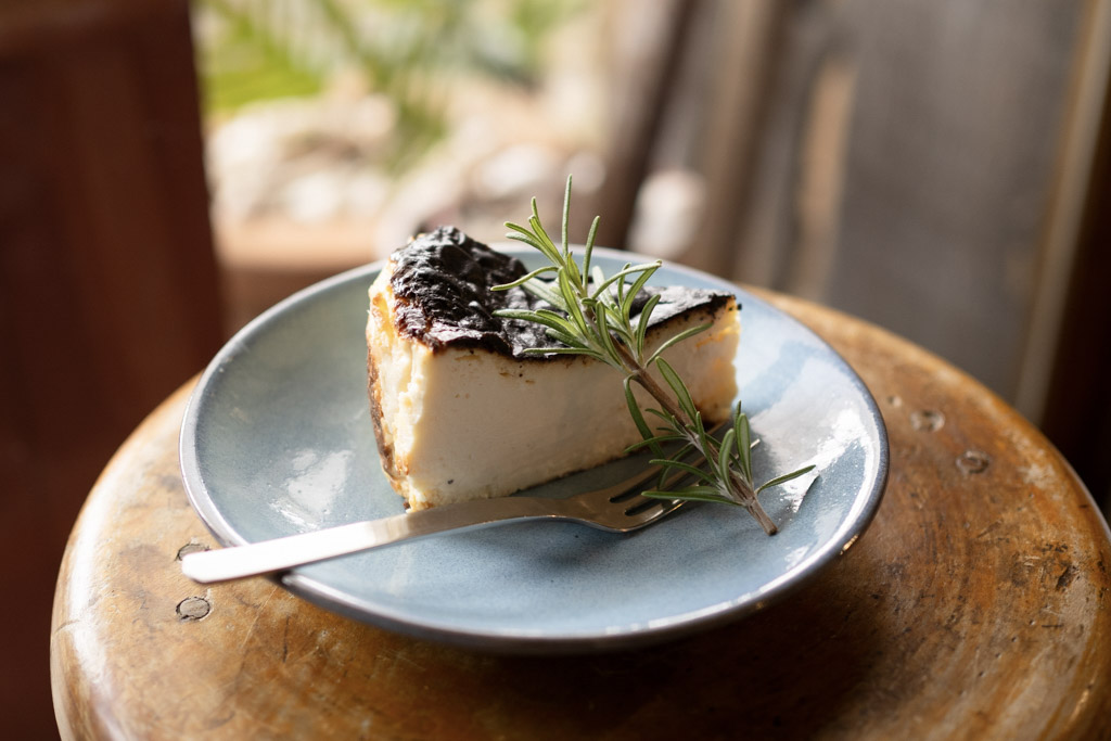 バスクチーズケーキ。なめらかで濃厚なチーズと黒く焦がした外側の苦味。その組合せが最高のベイクドチーズケーキです。