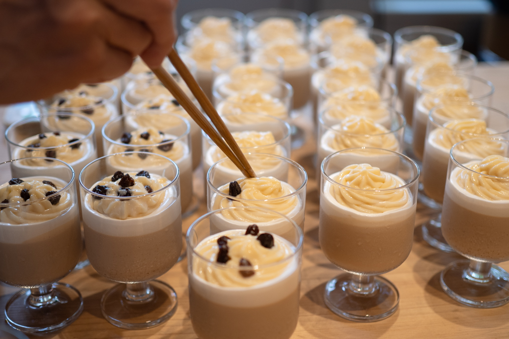 紅はるかモンブランとミルクティプリン。紅はるか(サツマイモ)のクリームとカスタードクリーム、そして紅茶プリン。味の組み合わせが最高のグラスデザート。