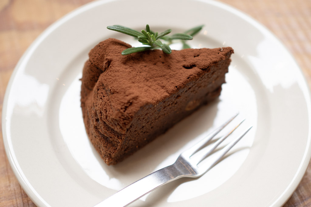梅とレモンのガトーショコラ。小豆島の梅とレモンをシロップ煮して、生地に混ぜ込んで焼きました。