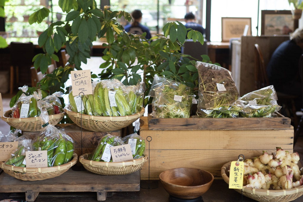 カフェ店頭では野菜の販売をしています。
