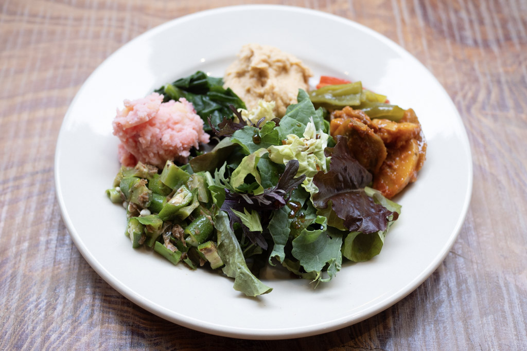 ※写真はビーツのポテトサラダに変更されています。 - リーフサラダ(ケール・水菜など)